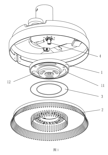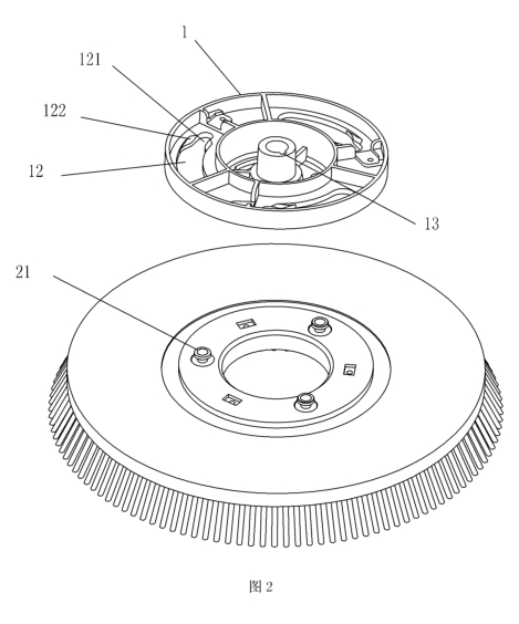 旭潔洗地機(jī)刷盤的安裝方法是:使用刷盤升降踏板升起刷盤座,將刷盤放到刷盤座中央,向上貼合刷盤座,向左旋轉(zhuǎn),待刷盤裝好,啟動刷盤開關(guān),刷盤轉(zhuǎn)動,完成裝刷操作。目前市場上所有洗地機(jī)品牌基本都是通過類似的電機(jī)導(dǎo)向?qū)崿F(xiàn)刷盤固定座與刷盤的自動對位,在對位的過程中,刷盤固定座與刷盤的安裝端面剛性碰撞,會產(chǎn)生強(qiáng)烈的碰撞對位噪音,影響操作者使用舒適性。為了提高用戶體驗,旭潔新型洗地機(jī)進(jìn)行了研發(fā)和改善。